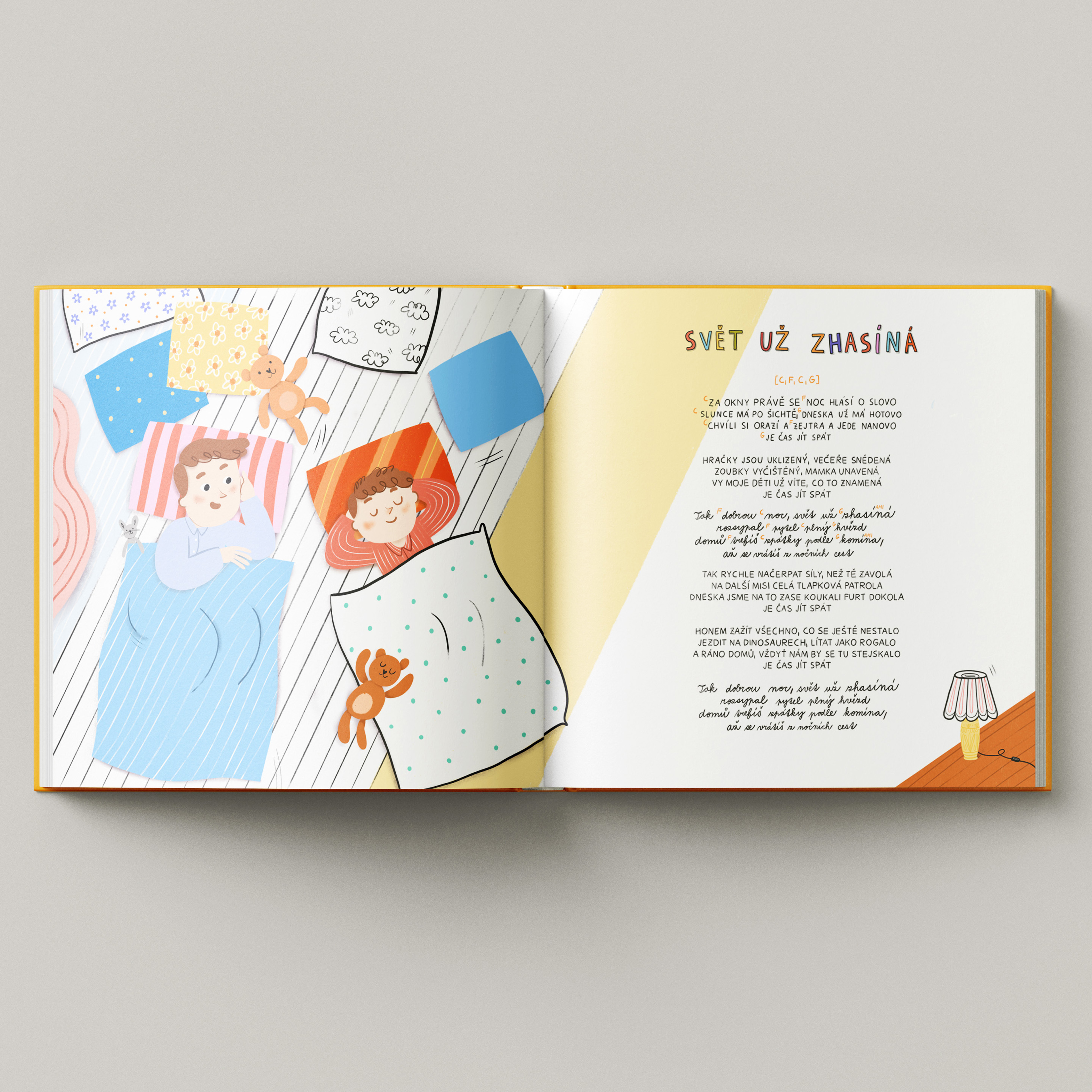 Knížka Ovce na pohovce obsahuje texty a akordy písniček z desky pro děti, dvě bonusový říkanky a překrásný ilustrace Bětky Z. Göbelové. Ideální ke čtení před spaním i k táboráku.